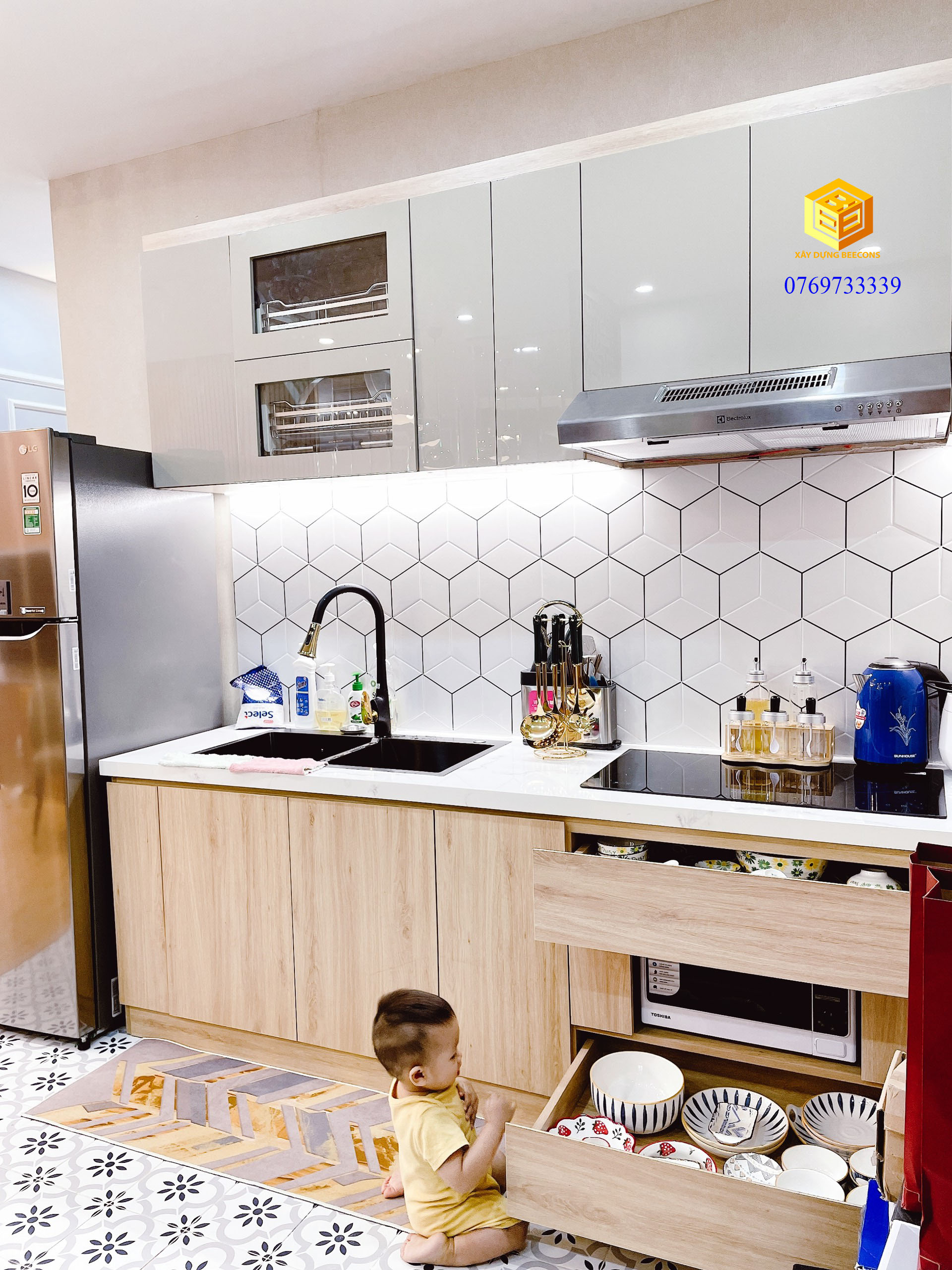 Xây dựng beecons hoàn thiện bếp cho chị T tại đường Phan Văn Hớn, quận 12, TP HCM.